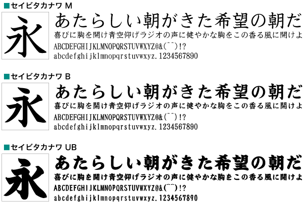 AR 楷書体(2)/システムグラフィ楷書(2)/タカナワ(3)/有澤楷書(2)/白洲毛筆楷書(4)